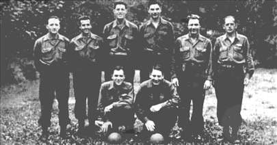 COMMAND POST ENLISTED MEN![]() Kneeling: T/5 Andrew Sampracos, M/Sgt. Orlo Westfall. Standing: Cpl. Blodgey Kazacoff, Pfc. Mario Calogero, S/Sgt. Joseph Dornseif, Pfc. Dennis Strom, Sgt. Paul Moretz, Sgt Pincus Ettinger |