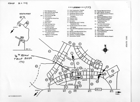 On a succeeding page you will find a map of the Troop area showing the different buildings and their use. You will note that in addition to the barracks, the day room, the orderly room, the mess hall and the arms room, we have a recreation hall, a post exchange, a chapel, and a theater in our area. In the post exchange, during the hours of 1500 to 2200. you can purchase almost any article you desire for your personal comfort. At the MacArthur Chapel, Catholic Mass is ce1ebrated on Sunday morning at 0900 and Protestant Services are conducted at 1000. The Chapel is open at all times for prayer and meditation and the Chaplain's services are available to the men of the organization every day. The motion picture theatre in the area has two shows each night. The admission charge is fifteen cents. At the troop recreation hall there are facilities for almost every indoor sport.